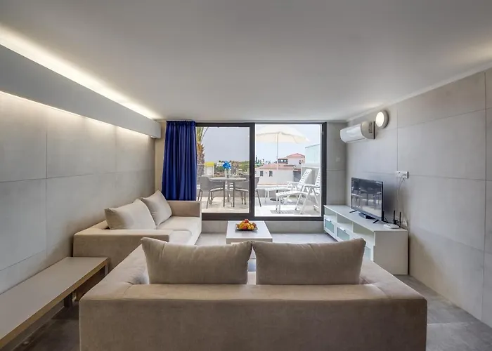 Gevoni Deluxe Suites Ayia Napa are vedere la oraș și este situat la aproape 5 minute de mers pe jos de Artificial Reef. Apartamentul se află chiar lângă Vathia Gonia Beach și la câțiva pași de Acappela.
